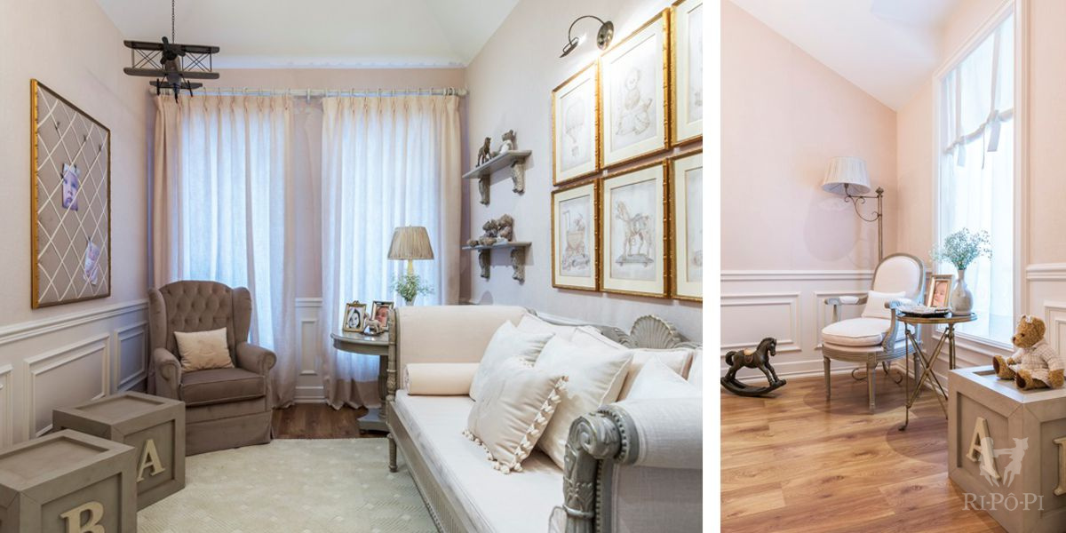 As paredes com as molduras podem ser apenas pintadas ou complementadas com papéis de parede.